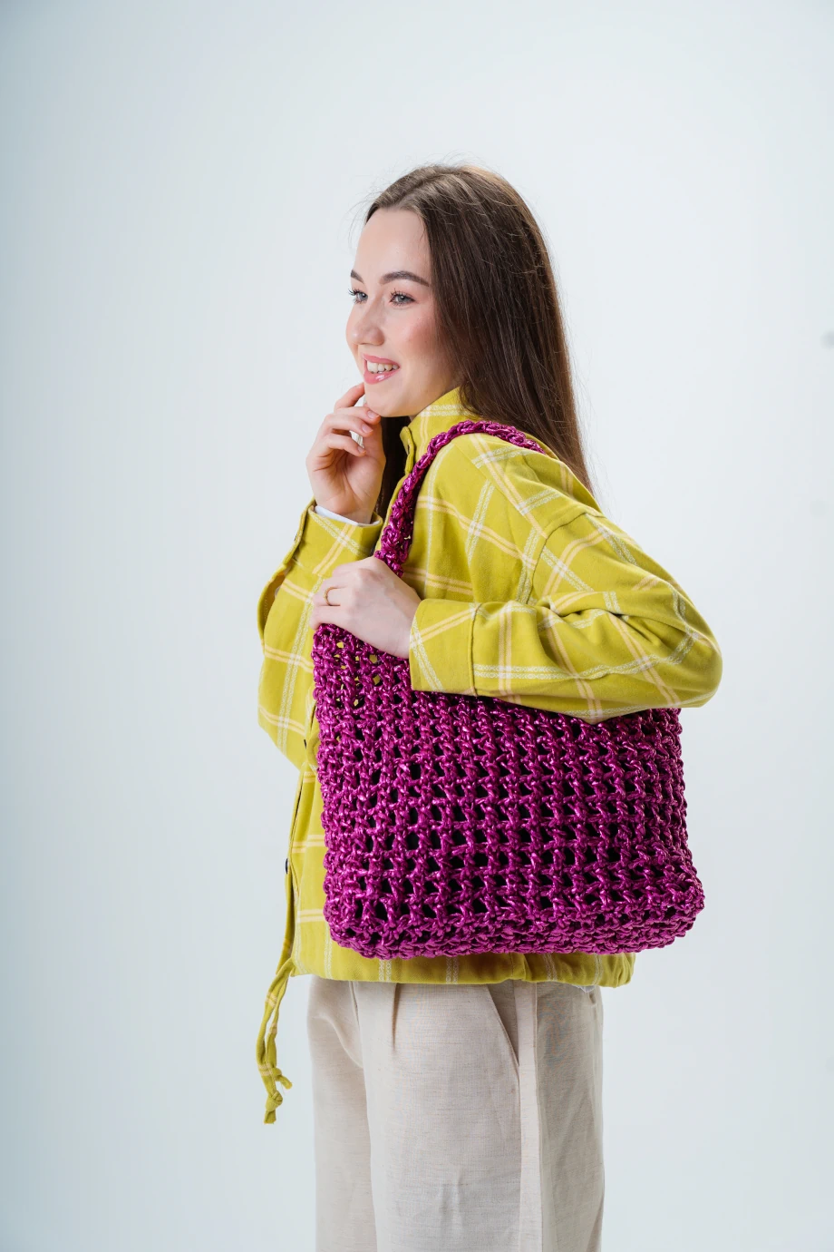 Handmade Crochet Handbag in Magenta