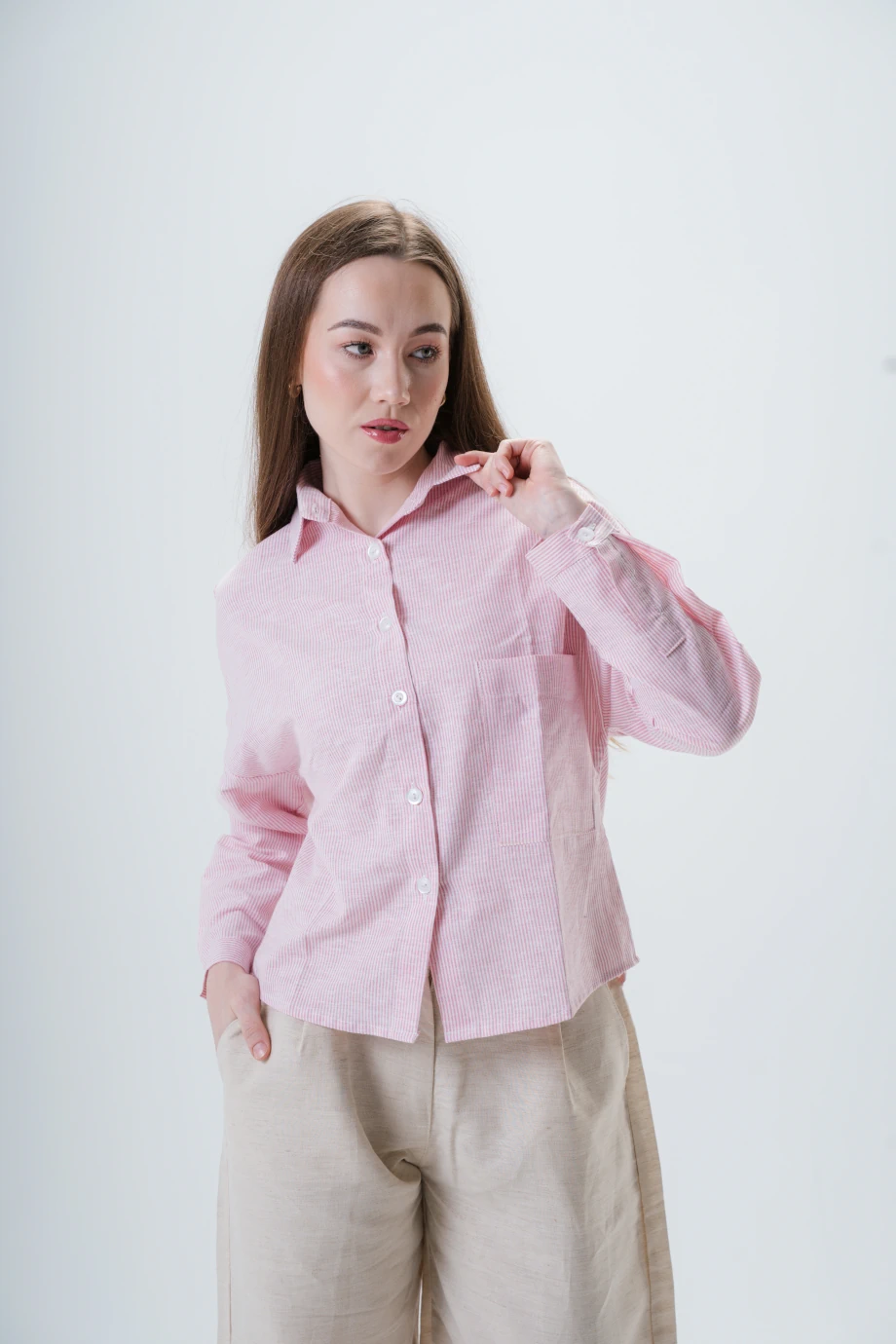 Striped Linen Shirt in Pink